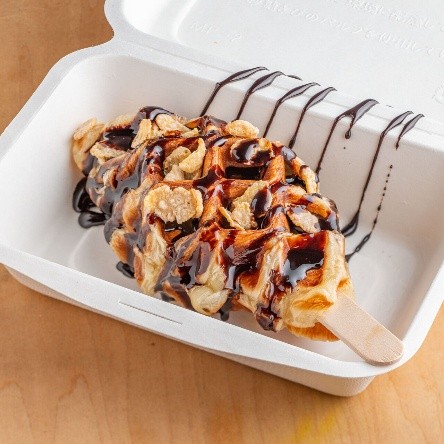 チョコレートクロッフル ¥600、キャラメルクロッフル ¥600、はちみつクロッフル ¥600、黒蜜きなこクロッフル ¥600、アップルシナモンクロッフル ¥600、抹茶きなこクロッフル ¥600、プレーンクロッフル ¥600、チーズソースクロッフル ¥600、コーンマヨクロッフル ¥600、バケツわたあめ ¥500